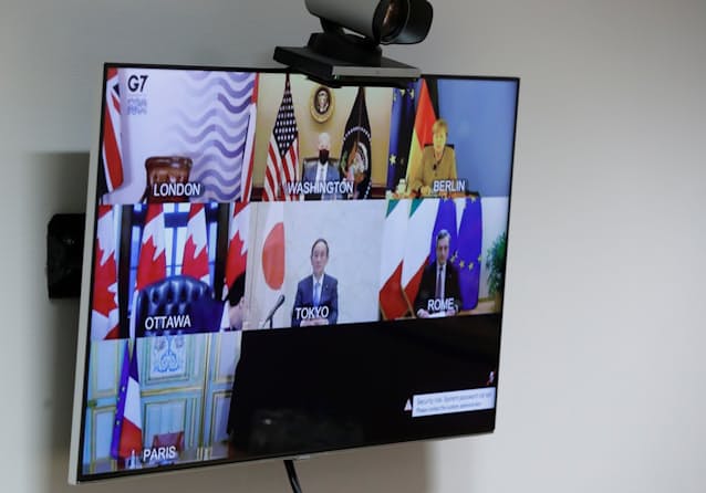 国際協調を掲げる米国のバイデン大統領に加え、日本の菅義偉首相、イタリアのドラギ首相の3人が初参加した。議長は2021年のG7議長国を務める英国のジョンソン首相が担った。6月に英南西部コーンウォールで開く対面のG7首脳会議に先立つ会議となった。