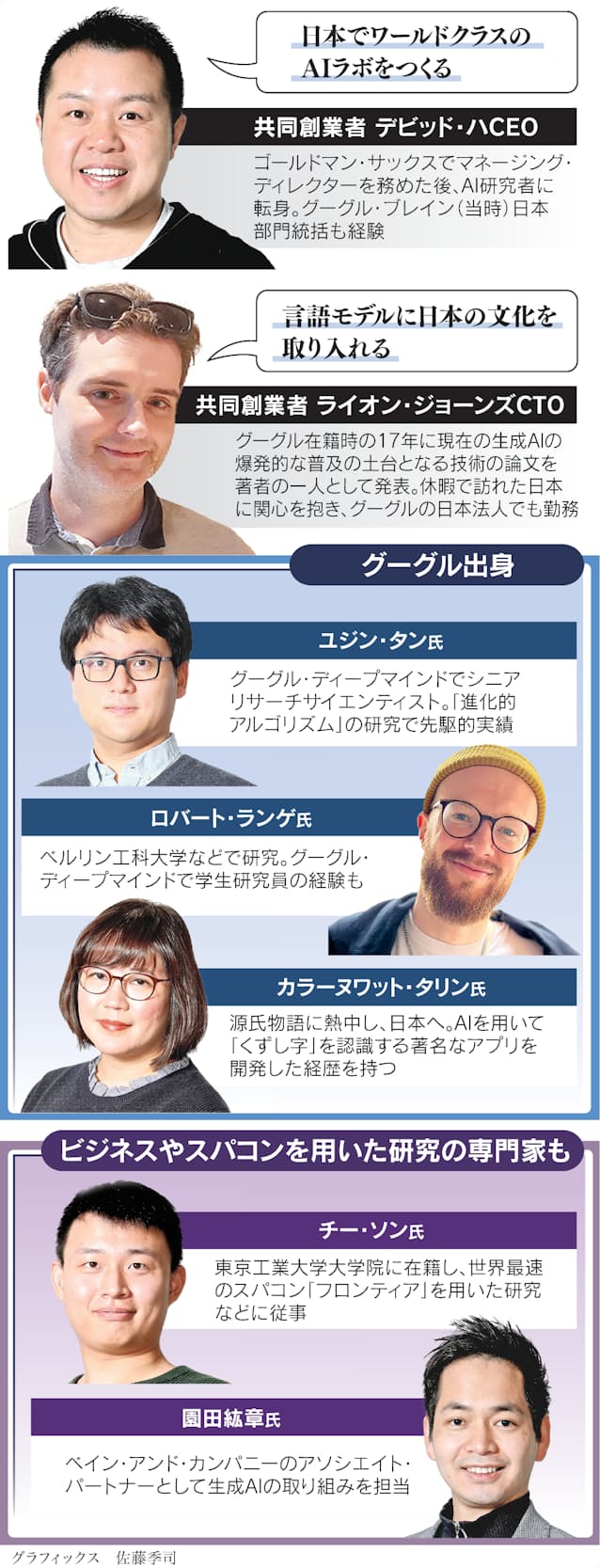 最高経営責任者(CEO)のハ氏は「本当にインパクトのあるAIの研究をしたいのであれば、グーグルや米オープンAIの後追いをしているだけではいけない」と力を込める。他社と似たことをしていては埋没しかねないという意識も、東京を創業の地に選ぶ動機になった。