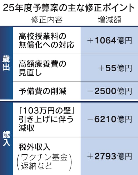 - ・2025年度予算の修正案、国会提出 3400億円減額へ