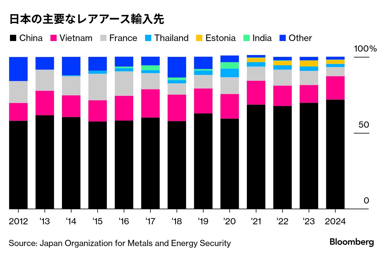 2010年に中国の強圧的な措置を受けたことで、日本は中国を経由しないレアアース供給網の構築を進めてきた。日本エネルギー経済研究所の佐々木忠則上級研究ディレクターによると、日本は中国へのレアアース依存度を約60%まで削減した。最近では、70%以上に上昇しているという。