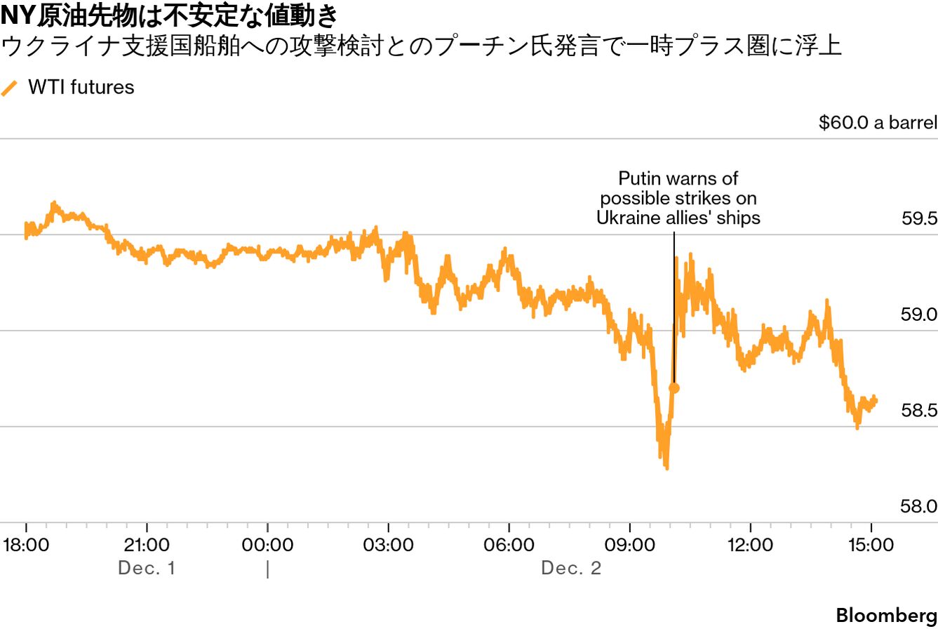 ニューヨーク原油先物は反落。不安定な値動きが目立った。ロシアのプーチン大統領がウクライナ支援国のタンカー攻撃を検討する可能性に言及。供給に支障が生じるとの思惑から、プラス圏に浮上する場面もあった。