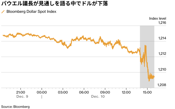 FOMC内の見解の相違や経済の不確実性にもかかわらず、市場は利下げを予想していた。パウエル議長に近いとされるニューヨーク連銀のウィリアムズ総裁が、11月21日の講演で12月利下げへの支持を示唆したためだ。