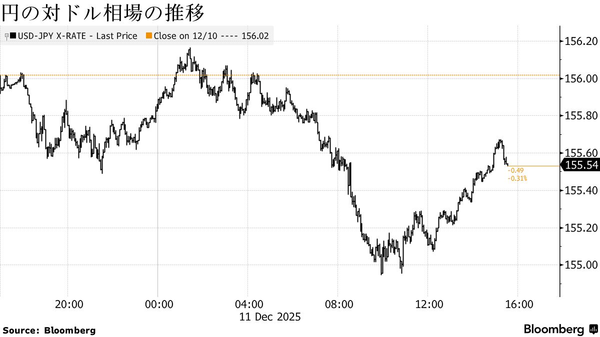 ドル売りが優勢となる中、円は対ドルで上昇。一時は0.7%高の154円95銭まで買われた。