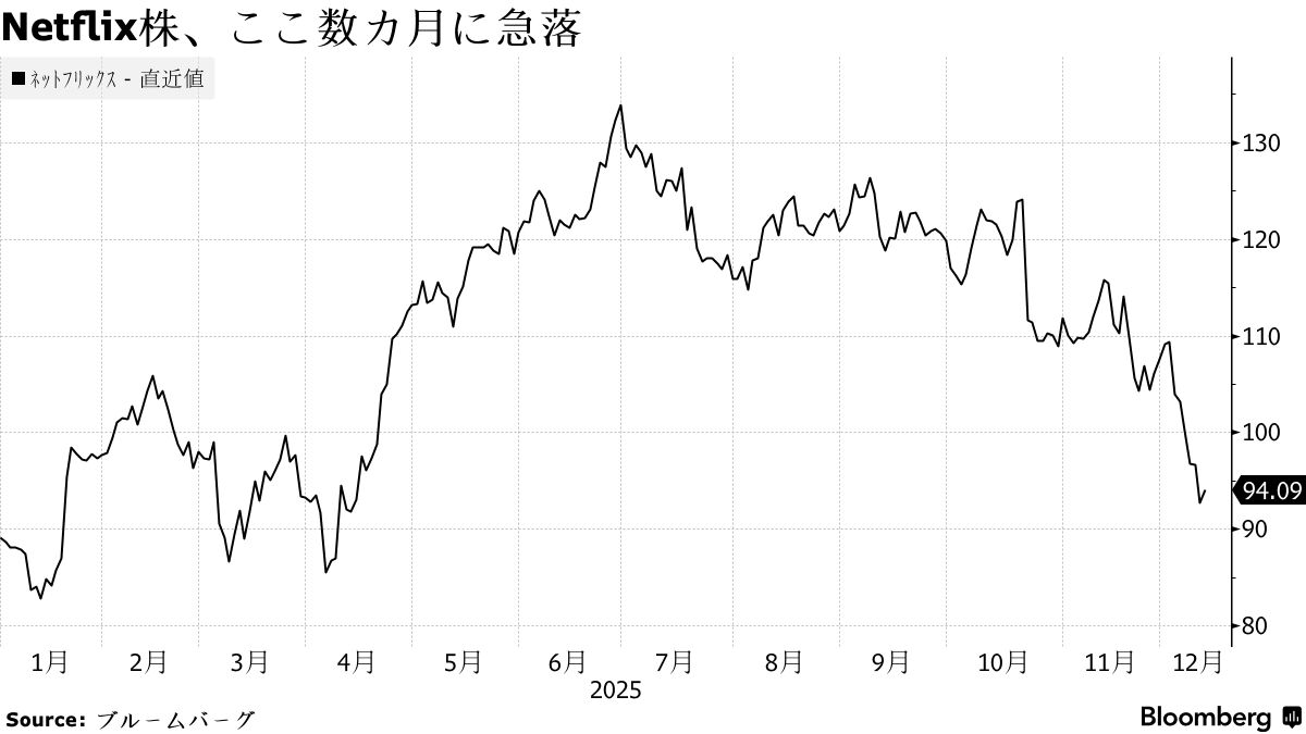 ▽Netflix株急落、個人投資家呼び込む-ワーナー買収懸念の中で逆張り<bloomberg日本語版>2025年12月12日 at 10:53 JST