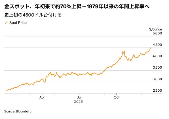 年末が近づく中、一部のトレーダーは利益確定に動き始めている。それでもスポット価格の年初からの上昇率は約70%に上る。