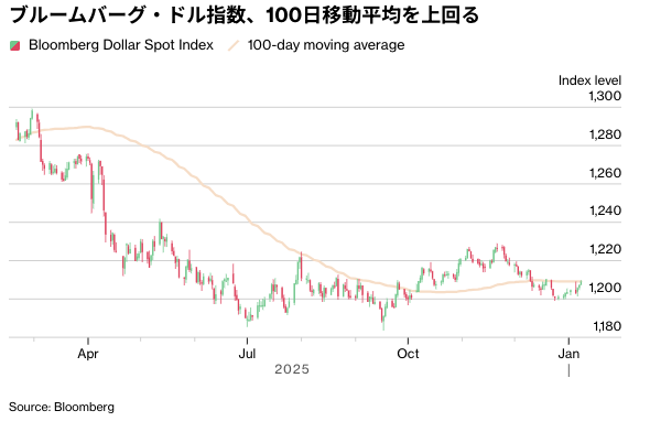 12月の雇用統計は、今年の米連邦公開市場委員会(FOMC)による利下げ見通しに影響を与える可能性がある。昨年、労働市場の弱さを示す兆候を受けてFOMCは利下げを3回実施したが、足元では一部の当局者がインフレリスクを理由に利下げの停止を示唆している。短期金融市場では、28日の次回FOMC会合での政策変更の可能性は極めて低いとみられている。年内の利下げは2回分が織り込まれている。