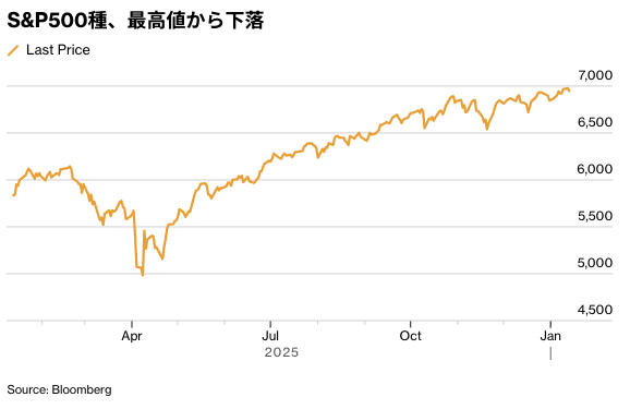 S&P500種株価指数は最高値から下落。JPモルガンは4.2%安。同行の2025年10-12月(第4四半期)決算では、投資銀行業務の手数料収入が予想に反して減少し、先月示した自社ガイダンスを下回った。