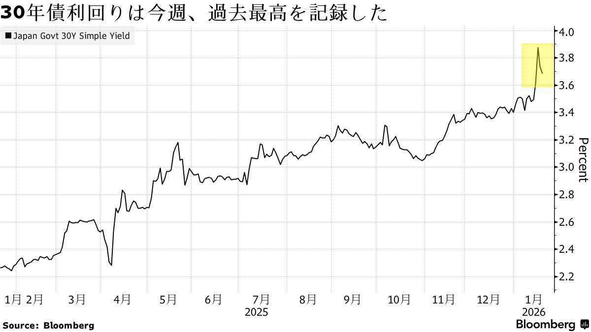 日本国債は今週暴落し、30年債と40年債の利回りが過去最高を記録した。投資家は、高市早苗首相の減税公約が国家財政に与える影響と、従来からの買い手による長期債の需要減を懸念している。