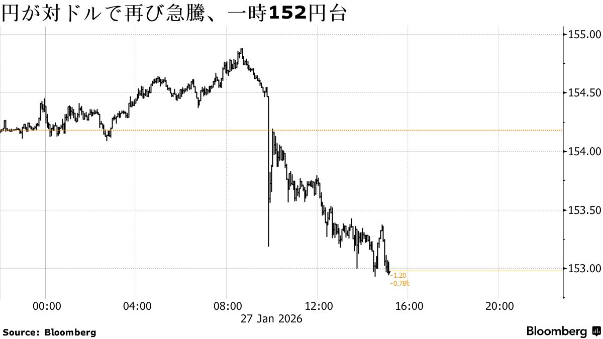 - 27日夜の外為市場で1ドル=154円台半ばから急伸、一時152円台後半