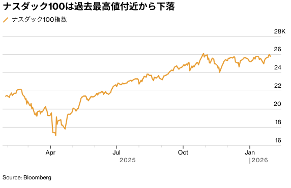 フォレックス・ドット・コムのファワド・ラザクザダ氏は「AI主導を前提とした一方向の賭けは、過密状態に見え始めている」と指摘。「AIというテーマが、期待したほど即座に高い利益を生まないのではないかという不安が投資家の間に広がりつつある」と述べた。