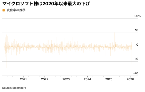 一方、マイクロソフトでは支出が過去最高水準に膨らむ中でクラウド事業の売り上げの伸びが鈍化し、AI投資の回収に想定以上の時間がかかるのではないかとの懸念が広がった。
