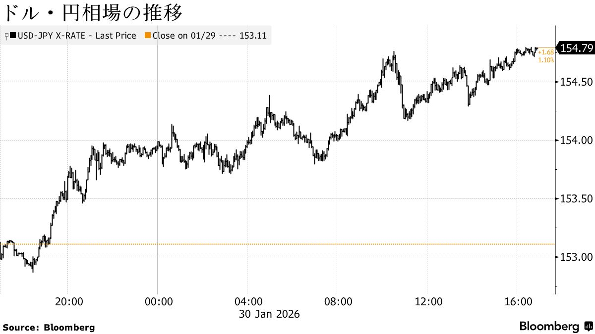 ブルームバーグ・ドル・スポット指数は前日比0.9%上昇した。トランプ氏がウォーシュ氏を指名する意向だと伝わったアジア時間、およびロンドン時間からの上昇の勢いが強まった。