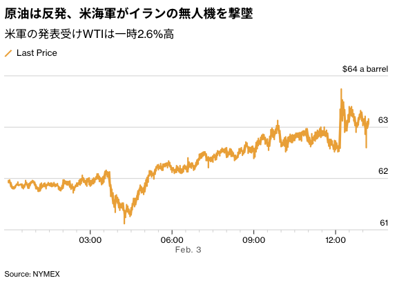米中央軍によると、艦載型ステルス戦闘機F-35Cが自衛のために無人機を撃墜した。この無人機は空母エイブラハム・リンカーンに「攻撃的に接近」していたという。ここ数日は、米国のイランに対する姿勢軟化の兆しを受けて地政学リスクプレミアムが後退していたが、今回の出来事によりプレミアムの一部が価格に戻った。