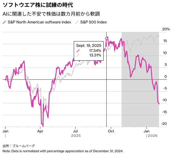 原題:‘Get Me Out’: Traders Dump Software Stocks as AI Fears Erupt (2)(抜粋)