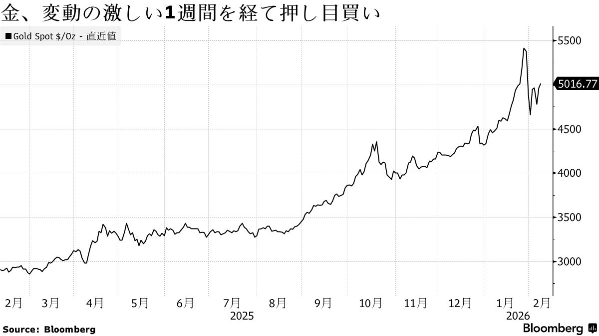 原題:Gold Advances Above $5,000 as Dip-Buyers Return to Choppy Market(抜粋)