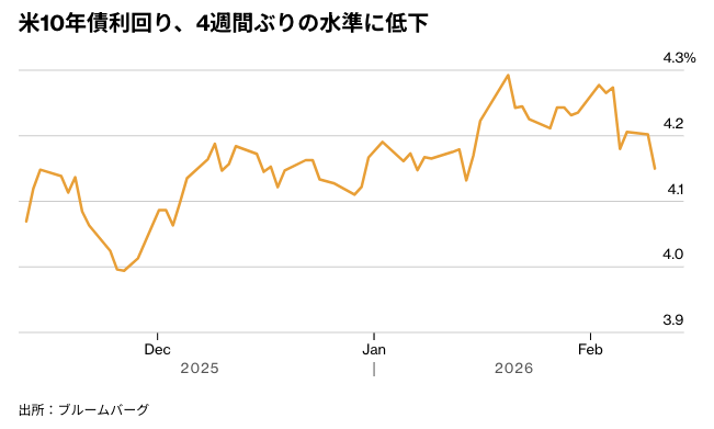 | 米10年債利回り | 4.14% | -6.1 | -1.46% |