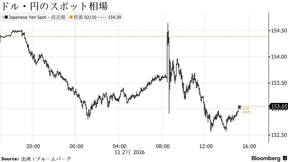 | ドル/円 | ¥153.26 | -¥1.13 | -0.73% |