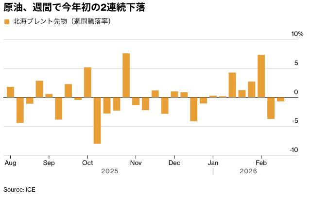 ニューヨーク原油相場はほぼ変わらず。週間ベースでは今年に入って初の2週連続安となった。米国とイランの核協議の行方に注目が集まる中、石油輸出国機構(OPEC)と非加盟産油国で構成される「OPECプラス」による供給拡大の見通しが相場の重しになった。