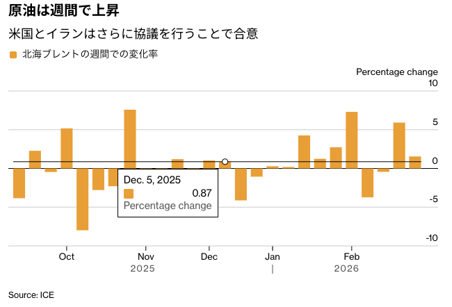 ニューヨーク原油先物相場は5日ぶりに上昇。週末を控えて原油市場では、米国とイランの緊張が激化する可能性が意識された。トランプ大統領は、イラン攻撃回避に向けた外交交渉に「満足していない」と発言した。