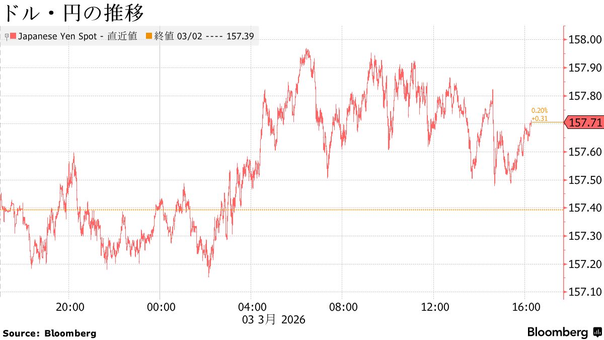 | ドル/円 | ¥157.72 | ¥0.33 | 0.21% |