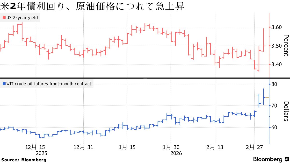 今週に入ってドル指数が上昇し、債券利回りも上昇した。米連邦準備制度理事会(FRB)による利下げ幅を巡る臆測が弱まったためだ。イランを巡る戦闘激化に伴いエネルギー価格が急騰し、インフレリスクが高まれば、FRBなどの主要中央銀行は金利を据え置くか、引き上げざるを得なくなる可能性がある。