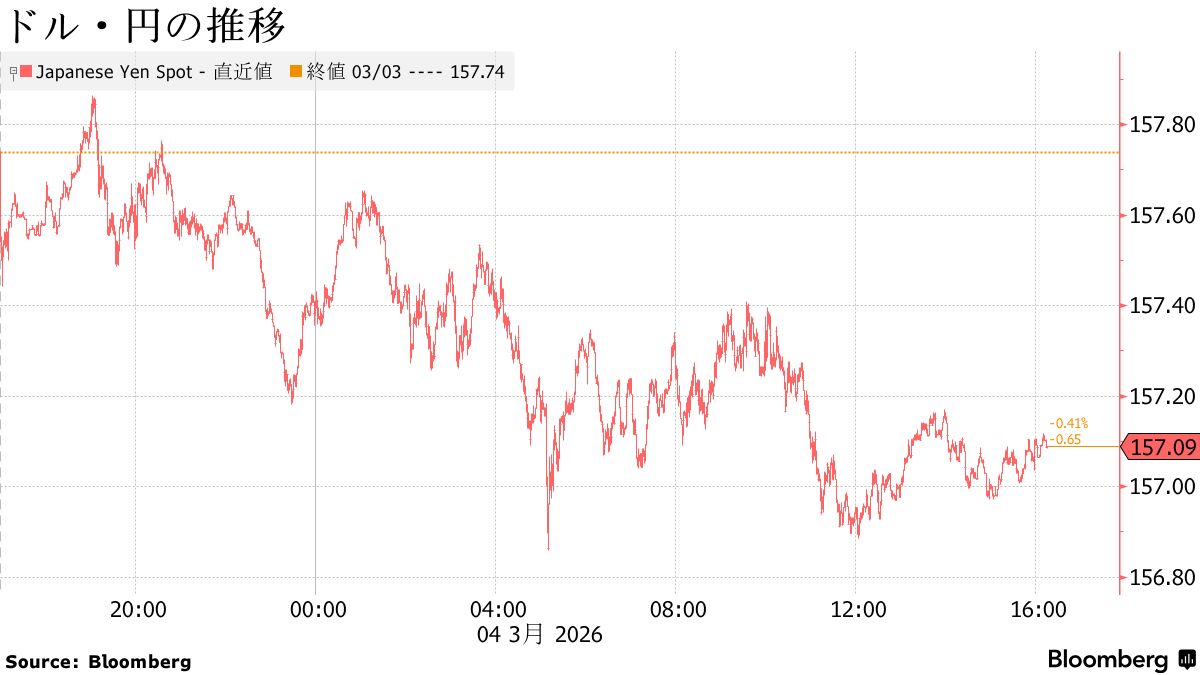 - ドル一時156円86銭、原油は下げる場面も-米国債利回りは上昇