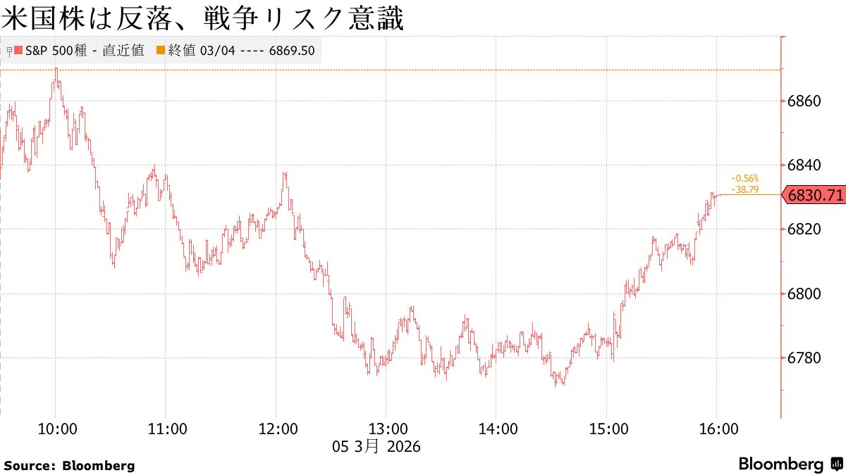 ニューヨーク金相場は反落。ドルの堅調が金に下押し圧力を加えたほか、中東での戦争が6日目に入り、収束の兆しが見えないことから、金融緩和の観測が後退した。