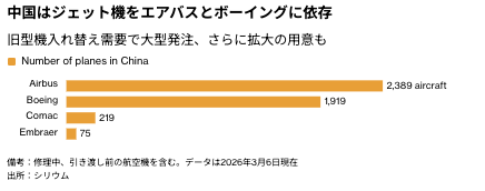 両者はまた、「787ドリームライナー」と「777X」約100機など、ワイドボディー型についても交渉していると、関係者らは部外秘であることを理由に匿名で話した。これらの双通路機に関する合意は後日発表される可能性が高く、米中首脳会談では発表されない見通しだと、関係者の1人は述べた。