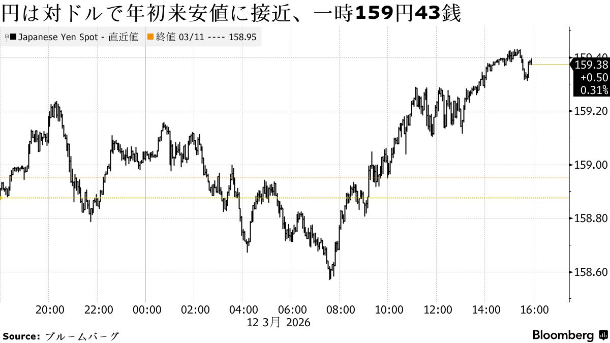 関連記事:円が対ドル159円台、年初来安値に接近-介入のハードル高いの声