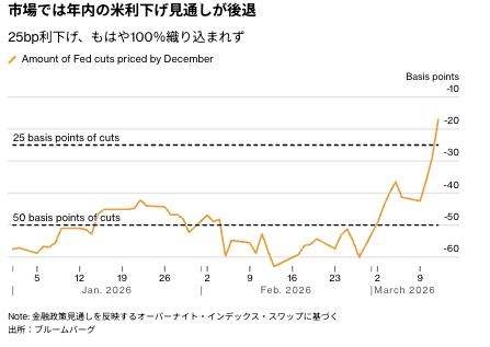 ナティクシスの米金利戦略責任者、ジョン・ブリッグス氏は「原油に起因するインフレ圧力が懸念されている」として、「今年の利下げ見通しは1回に後退していたが、それが1回未満にさらに後退した」と述べた。