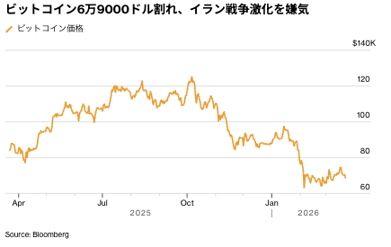 原題:Bitcoin Drops Below $69,000 as War Fears Weigh on Crypto Markets(抜粋)