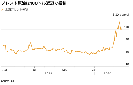 北海ブレントは一時7%下落して97ドルに近づいていたが、再び100ドルを上回って終えた。