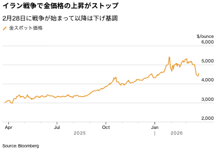 金スポット価格は続伸。米国がイランとの戦争終結に向けた15項目の計画を策定したことが好感された。