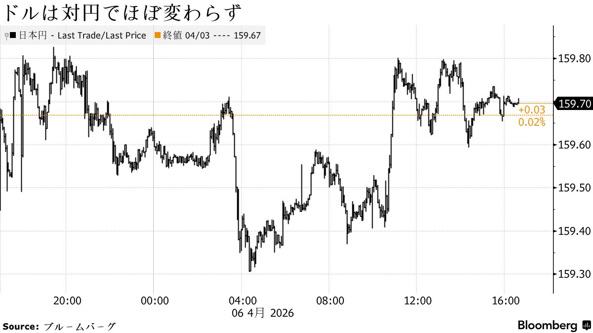 ドル・円はほぼ変わらず。日本銀行が6日に開いた支店長会議では、中東情勢の影響は現時点で限定的ながらも、長期化した場合は地域経済を下押しする懸念が多くの支店から示された。