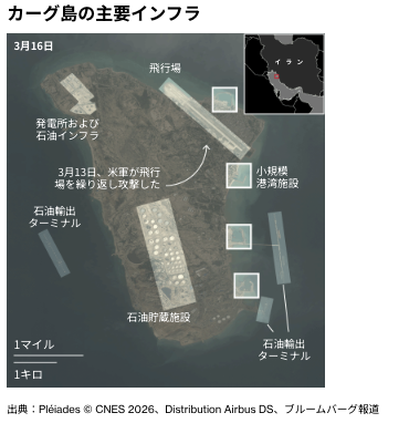 トランプ氏が設定した米東部時間7日午後8時の期限を前に、軍事的な緊張の高まりと、同氏の強硬な発言が一段と目立っている。米当局者によると、米軍は先月の攻撃でも標的としたカーグ島の施設を攻撃したが、エネルギー関連インフラは対象としなかった。