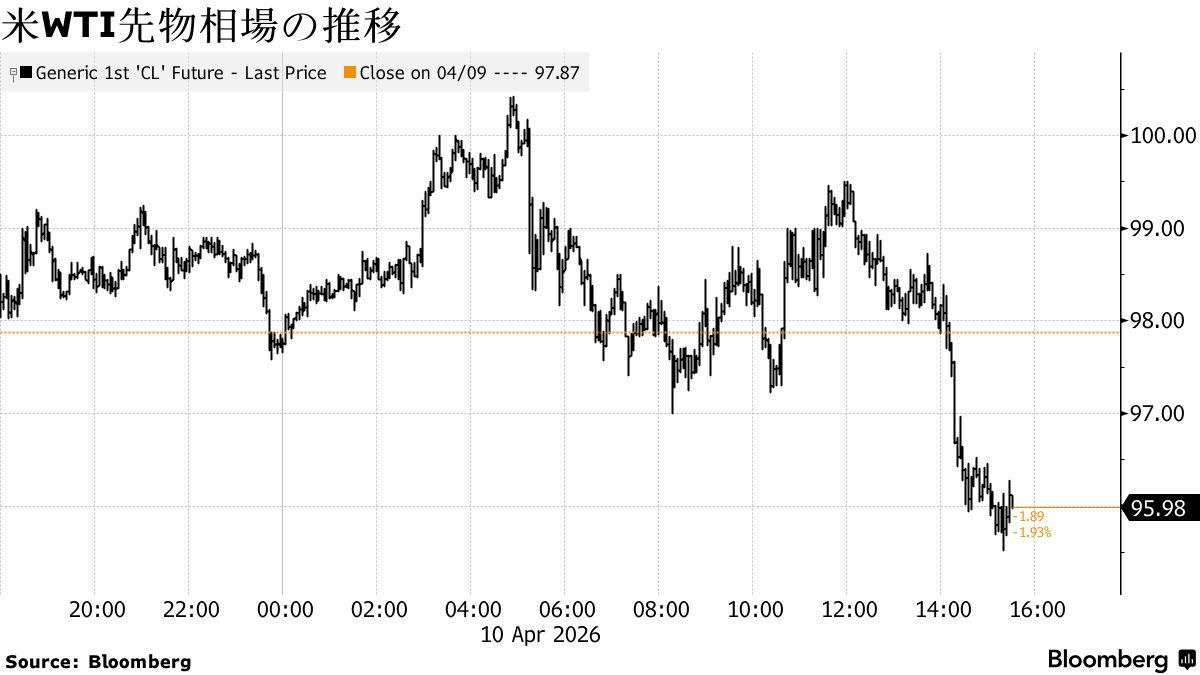 10日の米株式市場ではS&P500種株価指数が小反落。米国とイランの協議を控えて、原油価格が乱高下する中、株式は不安定な動きとなった。交渉の行方が、脆弱な停戦の先行きを左右するとみられている。