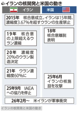 米国とイランが戦闘終結へ向けた協議を近く再開するとの観測が強まっている。実現すれば、ウラン濃縮の扱いが最大の焦点になるとみられる。米メディアが報じたウラン濃縮の一定期間停止は、イランが受け入れ可能な提案で、条件次第では協議の進展もあり得る。(国際部 吉形祐司)