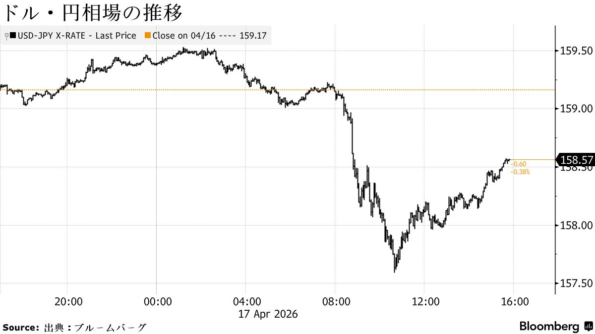 円はドルに対して3日ぶりに反発。米国とイランの和平合意への期待からドルが売られ、円は一時、対ドルで約1%高の157円59銭まで買われる場面があった。週間では3週連続で上昇した。
