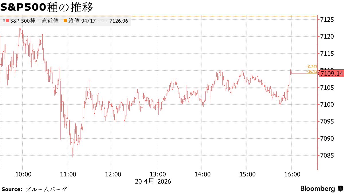 S&P500種株価指数は先週付けた最高値から反落し、6営業日ぶりに下げた。大手テクノロジー企業の一角が売られた。トランプ米大統領はイランとの2週間の停戦について、期限までに合意に至らない場合、延長する可能性は「極めて低い」と述べた。また、合意が成立するまでホルムズ海峡は封鎖された状態が続くとの見方を示した。