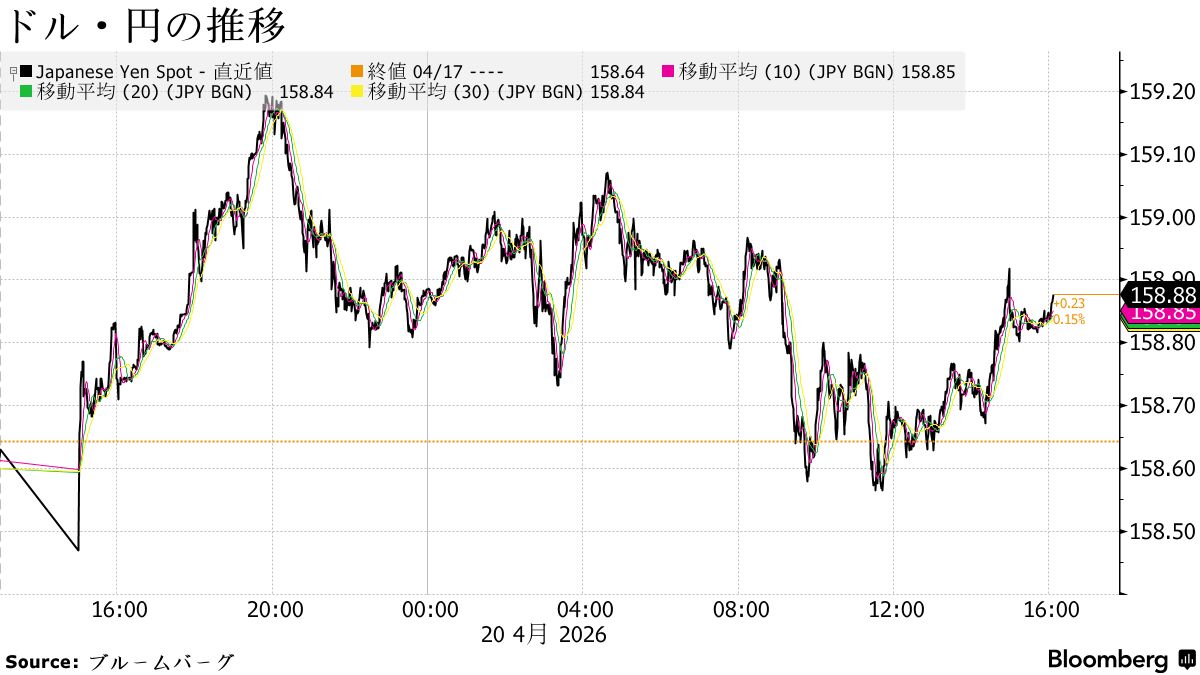 外国為替市場でドルは小幅安。対円では一時158円50銭台まで売られる場面もあったが、その後は再び上げに転じた。