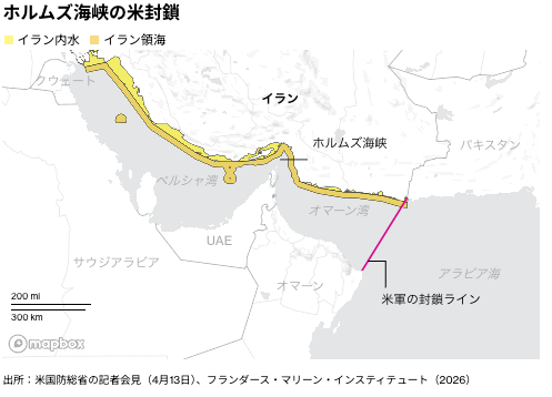 米国の海上封鎖により、イラン関連の船舶の多くはホルムズ海峡の通過を断念し、引き返している。それでも、船舶追跡会社によると一部は航行を続けており、イランが制裁により長く耐えられる可能性もある。