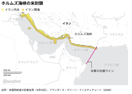 米・イランの和平交渉を膠着(こうちゃく)させている主要な争点がホルムズ海峡の問題だ。イランは米国の海上封鎖が維持される限り、交渉再開や海峡の再開には応じない姿勢を崩していない。一方、トランプ氏は戦争終結に向けた和平合意にイランが同意するまで作戦を続けると主張している。